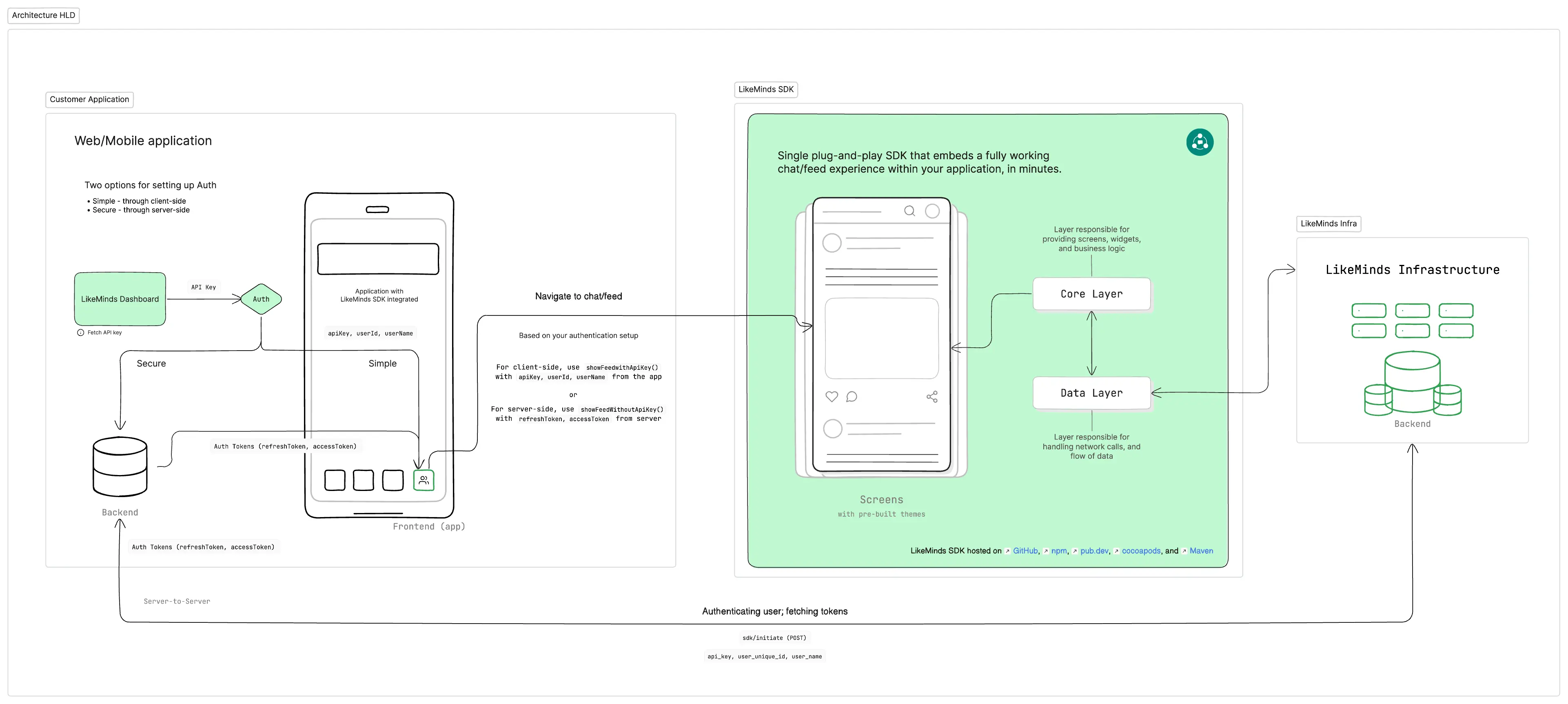 - Dashboard: The LikeMinds dashboard provides options to setup manage users, channels, and features and setup permissions. The dashboard also features moderation capabilities.